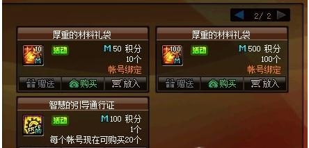 100个厚重的材料幸运礼盒500积分,10个50积分。