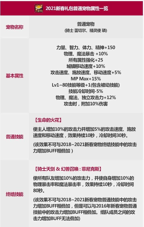 春节也即将来临,按照每年的惯例,DNF将在春节到来之际推出春节套,现在DNF官方已经公布了今年春节礼包的内容。那么这个2021春节宠物骑士蕾切尔什么属性?下面就跟着本站小编一起来看看吧!