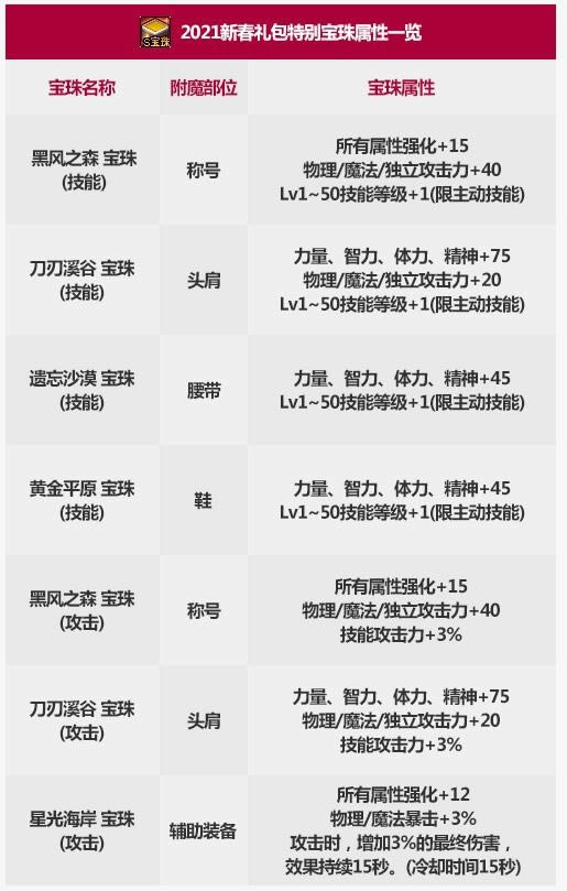 [摘要]春节也即将来临,按照每年的惯例,DNF将在春节到来之际推出春节套,现在DNF官方已经公布了今年春节礼包的内容。那么这个2021新春礼包特别宝珠什么属性呢?下面就跟着本站小编一起来看看吧!《DNF》2...