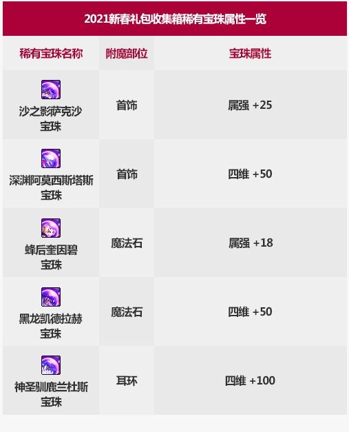 收集箱中每放入一个不同类型新春稀有宝珠,可增加10点三攻