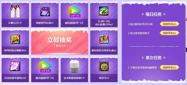 活动期间,完成对应任务可领取对应数量的抽奖券,抽奖券可用于抽奖获得极品奖励