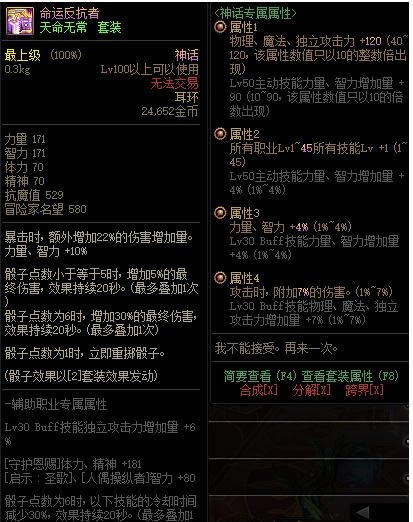 《DNF》将在12月24日迎来一波大更新,在本次的更新中国服将迎来暗夜使者三觉。并且在暗夜使者三觉版本中也会修改大量神话装备的属性效果,其中命运反抗者属性有什么改动呢?下面本站小编就带着大家一起来了解一下吧!