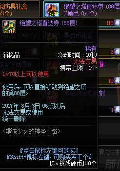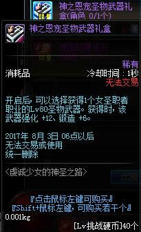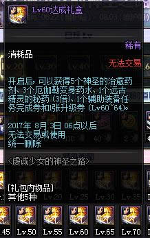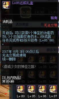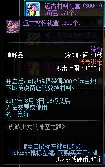 1、以上道具除了远古材料,任务传说装备,神圣的辅助装备,神圣的魔法石、头部装扮礼盒(女圣职者)和复活币没有删除日期外,将于2017年8月3日更新维护后统一删除请及时使用;
