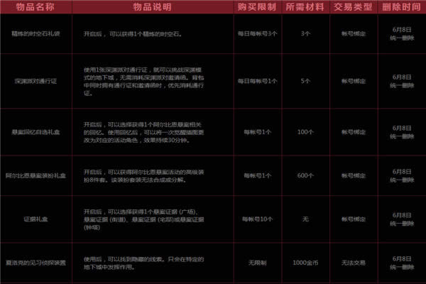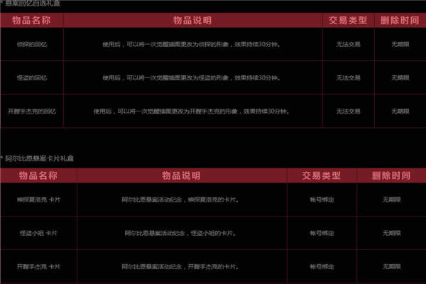 - NPC怪盗小姐、夏洛克开放活动商店,可以收集活动材料兑换奖励
