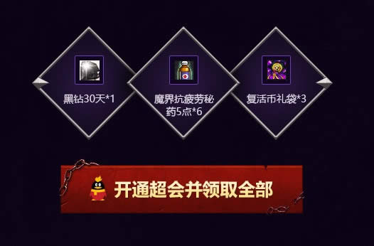 黑钻玩家每次通关地下城后可以追加获得通关经验的5%作为黑钻奖励,助你升级更迅速!