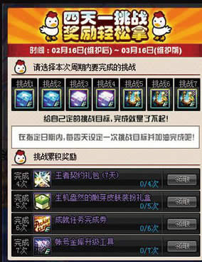 1.2017年2月16日至3月16日,完成挑战任务即可获得成就任务完成券、金库升级工具等各种给力好礼!