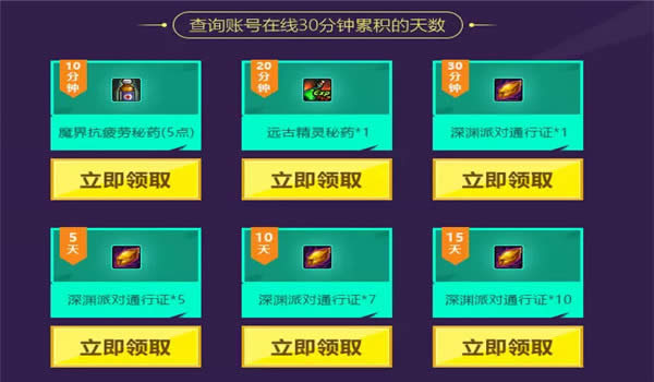 2.在线一定时间,所有玩家都可以进行领取福利。