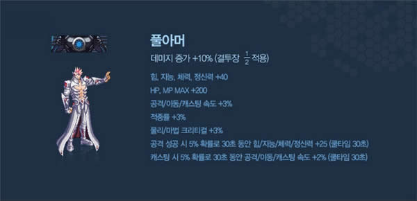 伤害增加10%,称号4维+40,HP/MPmax+200,3速度+3%,暴击3%,攻击时5%几率四维+25(CD30s),释放时5%几率三速度+2%(CD30s)