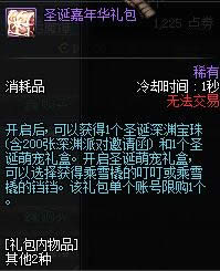 圣诞萌宠礼盒账号绑定。开启后, 可以选择获得乘雪橇的叮叮或乘雪橇的铛铛(无法交易)。礼盒将于2017.1.17 06点删除。