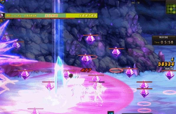 机制四:水晶的洗礼,阿莫西斯比斯会生成一面水晶墙,并落下红蓝水晶(和机制1一样效果),然后到另一边,释放大量紫水晶。玩家可以击打移动至红蓝水晶处的紫水晶,引起爆炸抵消水晶,也可找个位置进行卡位,不被吸附移动即可。