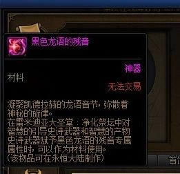 黑色龙语的残音的作用是对智慧的引导史诗武器和智慧的产物史诗武器赋予黑色龙语的残音专属属性。