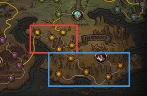 在红色框区域内收集90个[黑树之根],在金色框区域内收集120个[金色结晶块]