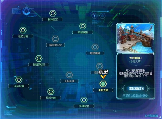 也可以在选择频道窗口中,选择特殊区域——永恒大陆,即可传送过去。