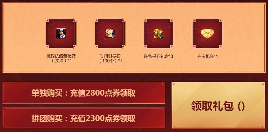 活动期间:在本页面充值点券可获得对应的游戏礼包和夺宝机会以及发红包机会,单独购买和拼团购买的价格不同,但礼包内容一样;