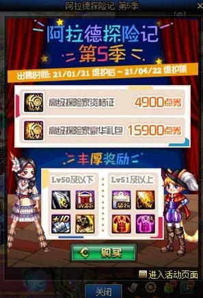 第五季阿拉德探险记分为49元高级探险家资格和159元档豪华礼包,等级由此前的88级飙升至100级。当然不买战令只是一个普通的探险家,奖励并没有高级探险家丰富。