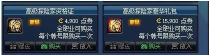 注意:高级探险家和高级探险家豪华礼包只能使用点券购买