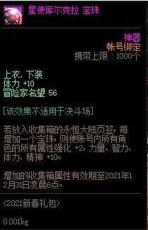 春节也即将来临,按照每年的惯例,DNF将在春节到来之际推出春节套,现在DNF官方已经公布了今年春节礼包的内容。那么这个2021新春礼包星使库尔克拉宝珠有什么用?下面就跟着本站小编一起来看看吧!