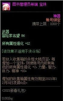 春节也即将来临,按照每年的惯例,DNF将在春节到来之际推出春节套,现在DNF官方已经公布了今年春节礼包的内容。那么这个2021新春礼包图书管理员希瑞宝珠有什么用?下面就跟着本站小编一起来看看吧!