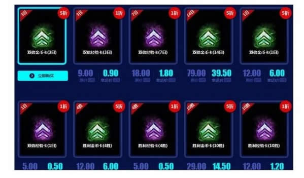 加成道具购买一个,仅限本人购买。经验卡1折,金币卡五折。