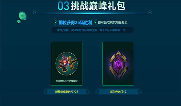 3.排位获得25场胜利即可领取挑战巅峰礼包