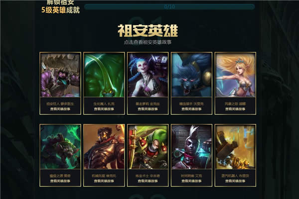祖安英雄传说是一个收集祖安皮肤、英雄、英雄5级成就赠送祖安徽章的活动,