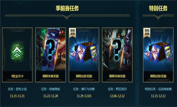 任务①:单人获得5场胜利或组队获得3场胜利(只能通过匹配模式、排位模式、