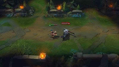 KLED骑着斯卡尔向着指定的位置地开始翻滚冲刺,期间积攒一个逐渐增加的护盾,周围的友方英雄将增加移速。 在途中经过敌人时,克雷德将直接瞬移到目标位置,并且造成目标最大生命的伤害。
