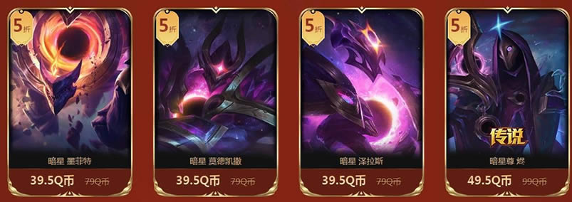 活动期间以下炫装皮肤将暂停炫装折扣,按照定价的5折(参与本次活动的皮肤)或售价(不参与本次活动的皮肤)销售,包括:睡衣守护者 拉克丝、睡衣守护者 索拉卡、睡衣守护者 厄运小姐和睡衣守护者 璐璐、星之守护者 拉克丝、星之 守护者 索拉卡 星之守护者 厄运小姐、星之守护者 璐璐(举例:星之守护者 拉克丝,价格7900点券,活动期间限时半价 3950点券,睡衣守护者 拉克丝 ,价格7900点券,活动期间维持7900点券的售价。)