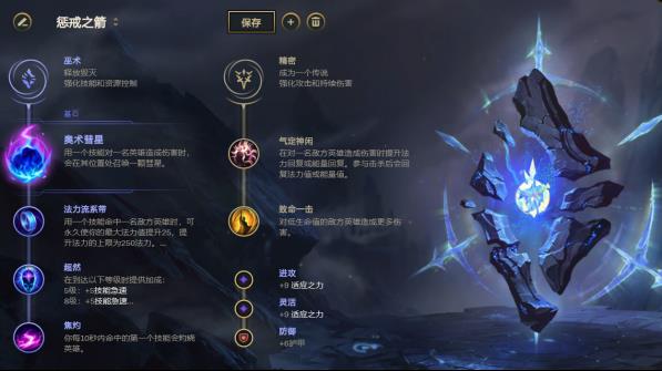 标准的破甲流符文点法,彗星焦灼来强化消耗能力,流系带提供法力续航,超然来减少技能CD。