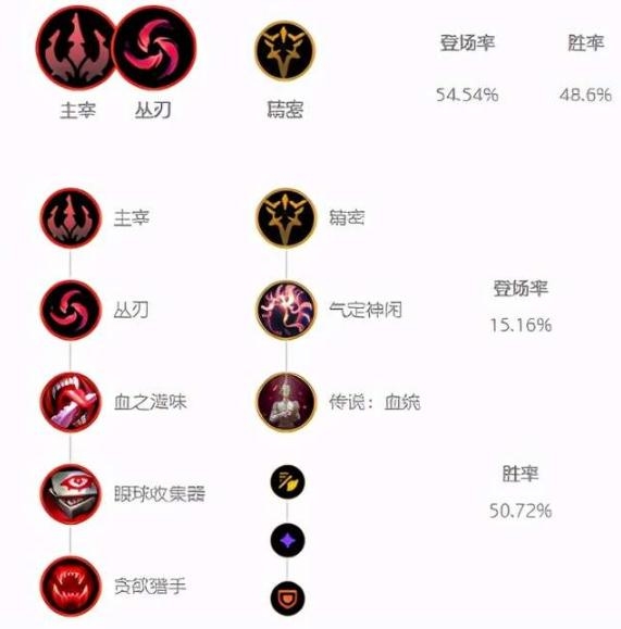 丛刃可大大提升卡莎的瞬间爆发能力,快速触发电浆效果,血之滋味贪欲猎手来增加续航效果,气定神闲参与击杀得到法力值恢复,让卡莎持续作战能力更强,血统提升续航。