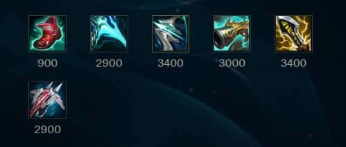 第5件多米尼克领主的致意,神圣分离者的神话被动能够提供护甲穿透,狂风之力的神话被动提供移动速度,在不出神圣分离者的情况下,多米尼克领主的致意正好弥补了穿甲效果,而且全程没有出肉装,所以能够频繁触发巨人杀手的被动。