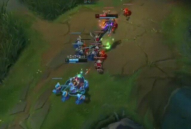 对线期间炸药桶放脚底下频繁的Q人,只要敌方走进范围内,二连桶跟Q,压低血量,不论是打野来抓,还是把对面打回家吃镀层都是赚的。