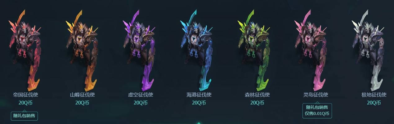 礼包包含:皮肤(8折)+6款炫彩(8折),随礼包销售的【破败军团 德莱文 灵岛征伐使】仅售0.01Q币