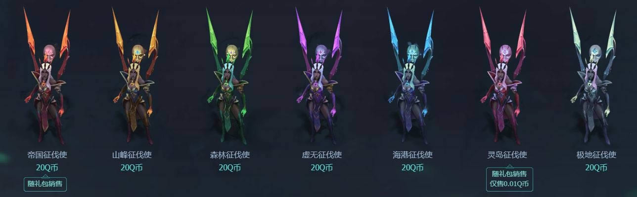 礼包包含:皮肤(8折)+6款炫彩(8折),随礼包销售的【破败军团 希瓦娜 灵岛征伐使】仅售0.01Q币