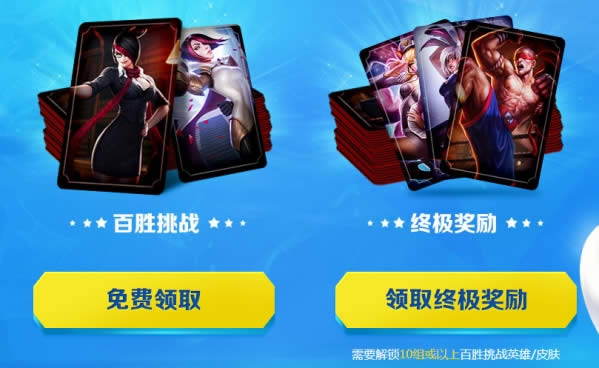 使用网吧特权,收集王之蔑视,解锁并领取一组百胜挑战英雄/皮肤。