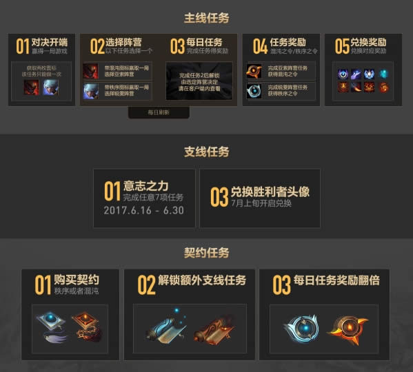 选择黎明/黑夜,完成日常任务,获取秩序之令/混沌之令