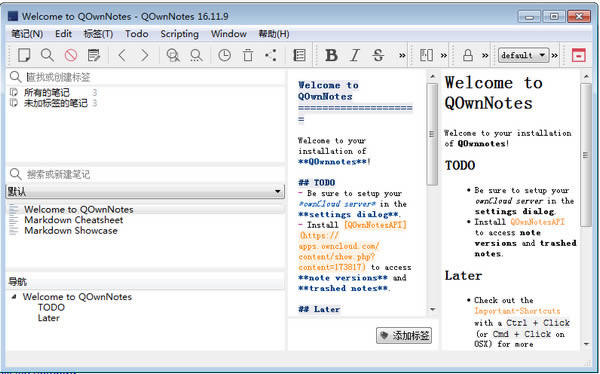 请注意,如果你想使用同步功能,你需要在ownCloud服务器上您的计算机和QOwnNotesAPI上安装ownCloud。