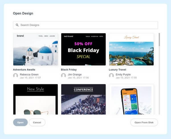 将电子邮件设计转换为“新建设计”对话框中可用的模板,并且您的团队可以访问这些模板。