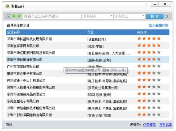 职腾百科是一款运行于Windows平台的企业信息查询工具,它可以帮助求职者获取真实有效的企业信息,少走弯路、少花时间,提高求职效率。同时,本软件也能帮助企业HR准确判断求职者的工作背景和性质,以此减少无效面试次数,提高招聘效率。