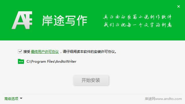 1.到本站下载安装岸途写作,打开安装程序,选择安装位置,点击开始安装