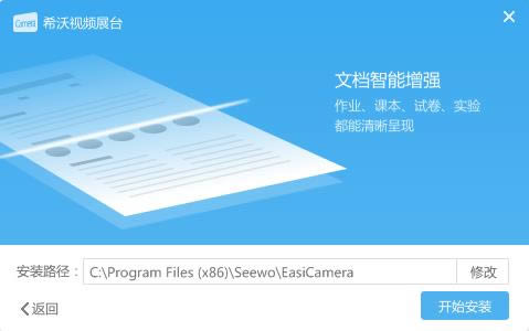 1.到本站下载安装希沃视频展台,打开安装程序,点击自定义安装选择安装路径,开始安装