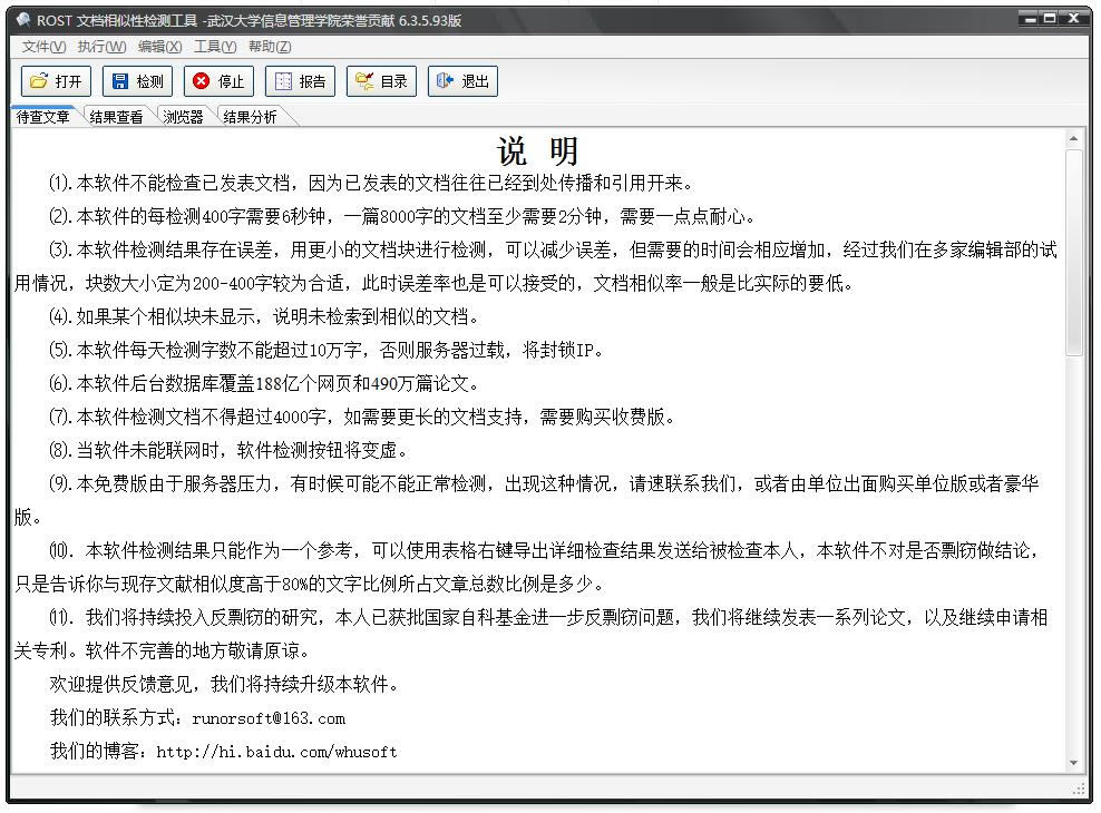 - 本软件不能检查已发表文档,因为已发表的文档往往已经到处传播和引用开来。