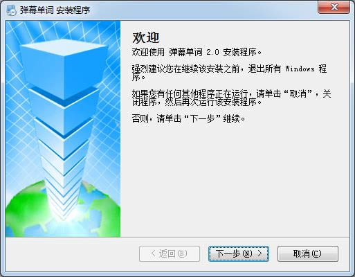 1.到本站下载安装弹幕背单词,打开安装程序,点击下一步继续安装