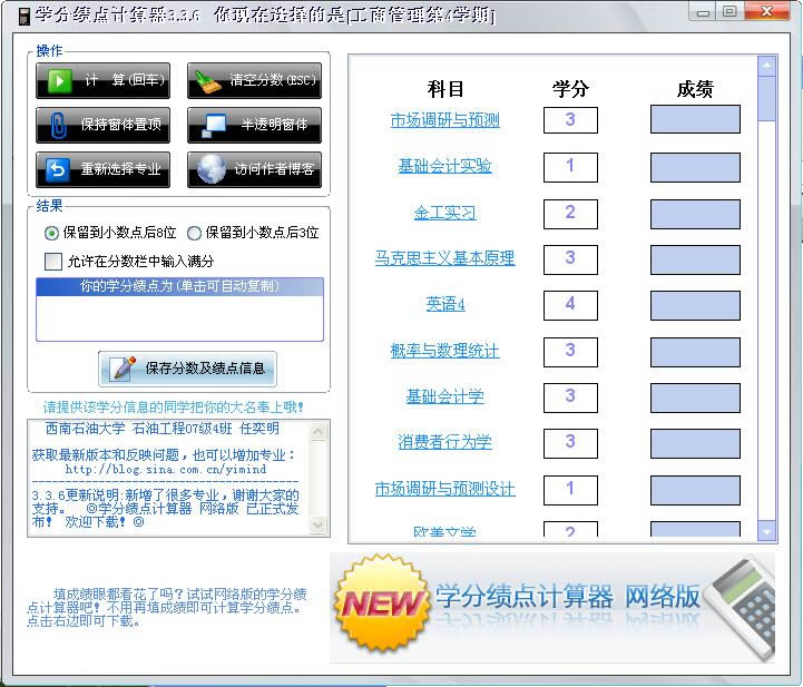 学分绩点计算器是针对学生党制作的学分绩点计算软件,只要在绩点计算器中输入你的成绩,对应科目的绩点就可以帮助算出学生目前的绩点。软件支持表格的显示与实时计算的功能,方便快捷简洁明了,是大学生朋友必备的应用。内置有西南石油大学部分专业的学分信息,目前为大学生绩点计算参考标准。