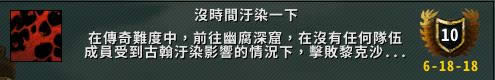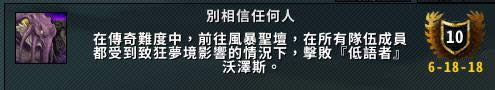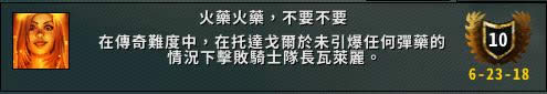 簡單說就是不能中任何技能、除了普攻白字外不能受到任何傷害,所以一定要躲好地上的紅水綠水、打斷所有的血箭。這也是DPS越快,出意外的機會越小,也就越容易解的成就,建議全技能嗜血RUSH。