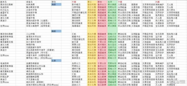 很抱歉我不太会在页面做成表格的形式,主要是我本身已经敲了很多字了,再用表格重新做一遍太累了,此外,其他职业的我也考虑在做。希望大家喜欢