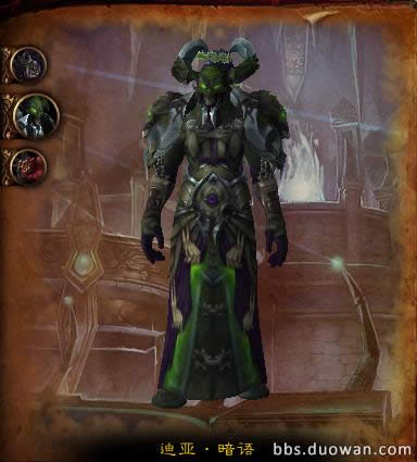 迪亚·暗语:迪亚·暗语,出生在影月氏族,是她们氏族第一个信奉黑暗之星的召唤的人。影月氏族禁止使用虚空魔法,她因曾经使用而被流放。她隐居了十几年,痴迷于虚空魔法,直到她听到了她的最终指令:"留心古尔丹的召唤。"