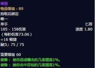 这个戒指属于盗贼的毕业戒指,一点命中一点暴击大的都是盗贼所必须的属性