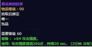 屠龙者的纹章、蜘蛛之吻就不必多说了。屠龙者的纹章属性非常强,并且是所有物理职业必备的道具,建议玩家优先出分数
