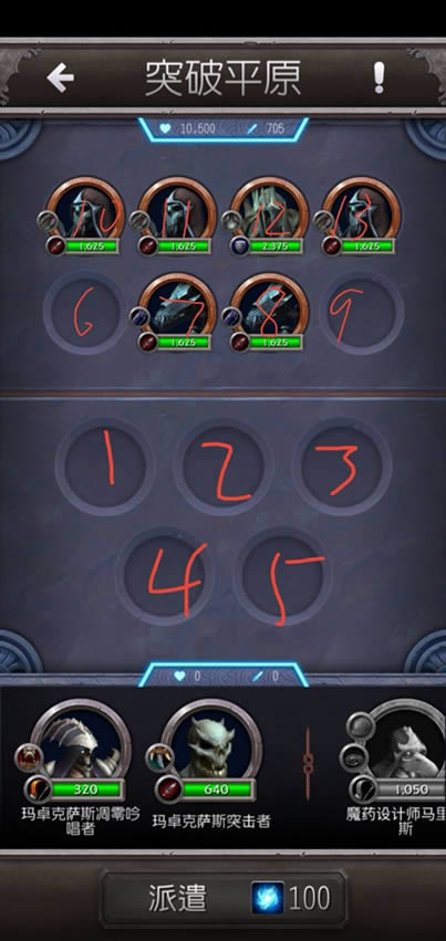 现在的问题是绝大多数随从的技能都在第1轮释放,怎样确保他们释放的技能能够吃到艾米尼的战吼加成呢?大家先看这个站位图。